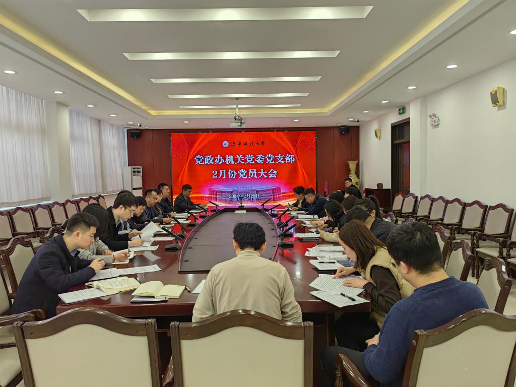 2月29日上午,党政办机关党委党支部在机关楼120(东)会议室召开党员大会,传达学习校党委第五轮巡察反馈意见,开展组织生活会前集体学习。党支部书记李宁主持会议,校党委书记李平以普通党员身份参加会议。