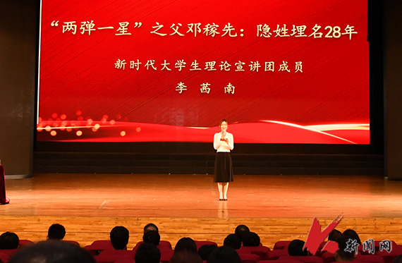 李茜南演讲的是杰出科学家、“两弹一星”元勋邓稼先的感人故事。李茜南说,为了祖国,为了国家防科研事业的发展,邓稼先默默无闻奋斗了数十年。对祖国、对民族他鞠躬尽瘁,无私奉献;干工作他身先士卒、不怕牺牲、不求名利,甘当无名英雄。面对新时代新任务新要求,我们一定要以邓稼先为榜样,坚守正道、追求真理、甘于奉献,将自己的人生融入实现中华民族伟大复兴中国梦的奋斗之中。司振卓宣讲的题目是《战‘疫’英雄刘智明:用生命守护生命》,他激昂地说,在这场艰苦卓绝的抗疫斗争中,如刘智明院长这样的医务工作者们用大爱护众生,献出了自己宝贵的生命。作为新时代大学生,我们要大力弘扬生命至上、舍生忘死的伟大抗疫精神,凝聚起勠力同心、锐意进取的磅礴力量,在全面建设社会主义现代化国家的征程中贡献自己的青春力量。