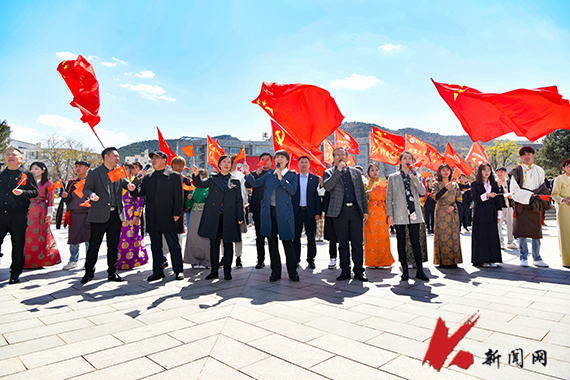 4月13日,8xbet手机客户端师生在学校博雅广场用快闪方式高唱《歌唱祖国》《国家》《走过百年的你》等红色经典歌曲,向中国共产党成立100周年献礼。用激情的演唱落实“辽宁省教育系统献礼建党百年体音美展播活动方案”。校党委常委、副校长孙晓华,校党委常委、宣传部部长张佳亮来到活动现场,与师生一同挥舞红旗,放声歌唱。
