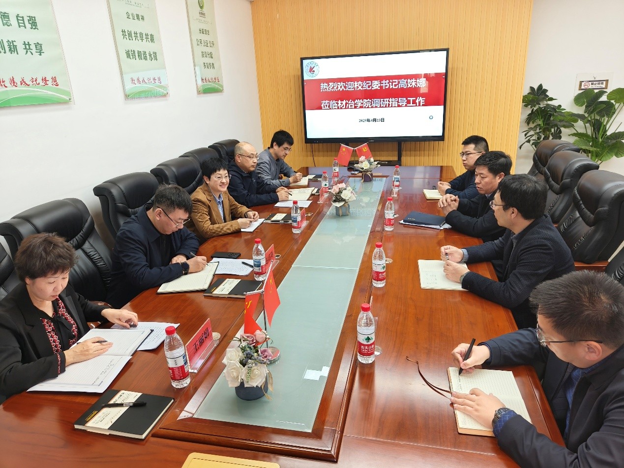 为深化党风廉政建设工作,4月23日,8xbet手机客户端纪委书记高姝娜、纪委副书记金福尧等一行五人前往材料与冶金学院开展党风廉政工作调研,学院领导班子成员及相关负责人参加调研会议。