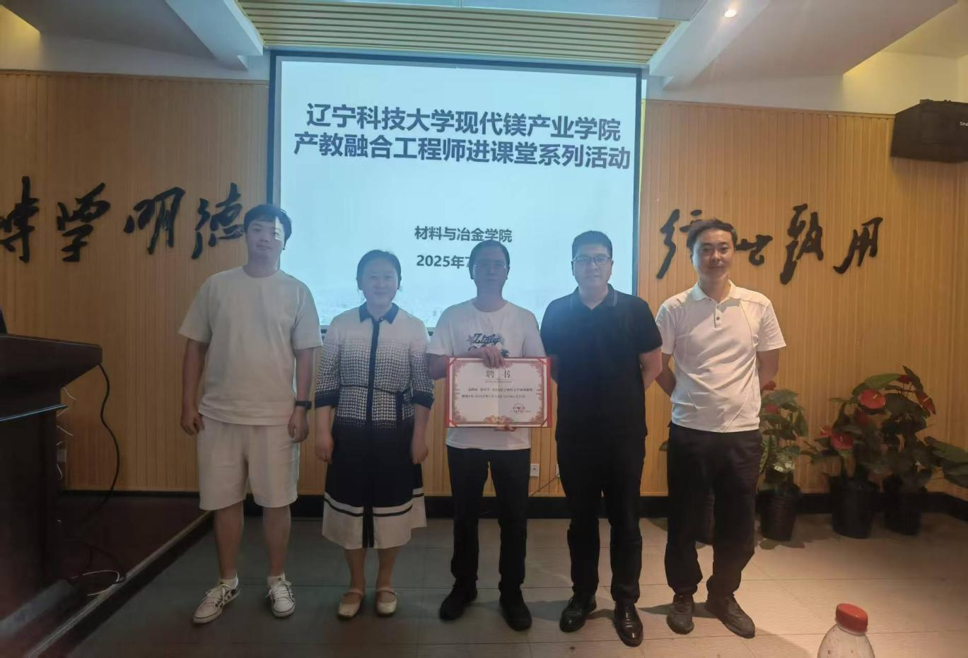 为深化产教融合,推动行业前沿技术与职业教育紧密结合,7月4日,材料与冶金学院无机系开展现代镁产业学院“产教融合工程师进课堂”系列活动,应田琳教授邀请,鞍山钢铁冶金炉材科技有限公司分厂厂长、正高级工程师张小宁为材冶各专业师生授课。副院长赵广迪出席并主持会议,为工程师颁发“客座教授”聘书。