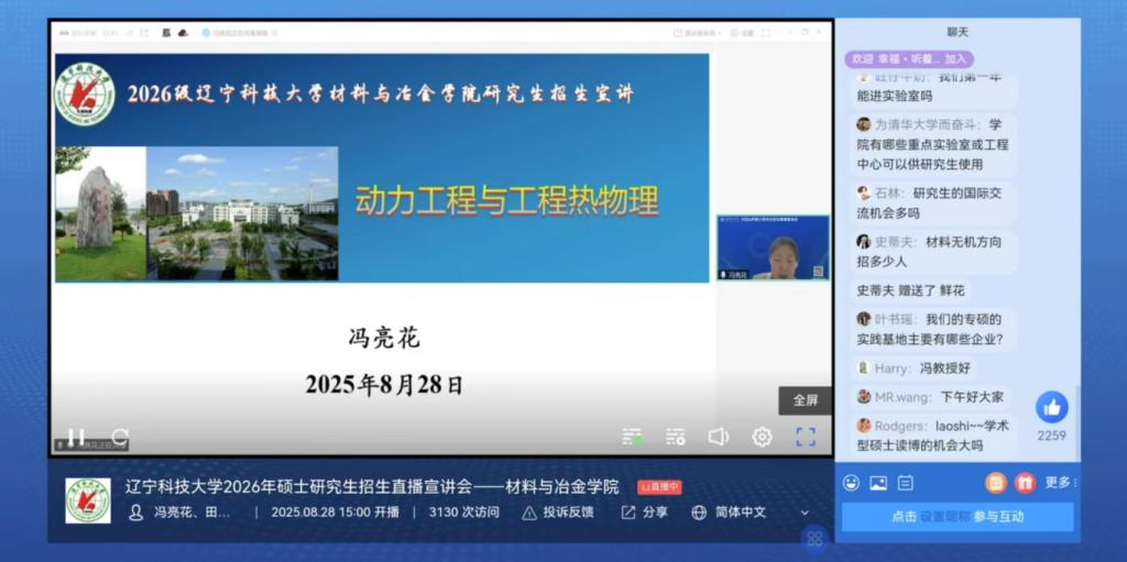 为确保宣讲效果,学院精心组建了专业的宣讲团队。田琳教授、冯亮花教授、宁哲副教授分别就材料科学与工程、动力工程与工程热物理、冶金工程三个学科的设置特色、师资队伍、科研方向等内容进行了系统介绍,并就考生及家长广泛关注的研究生导师双选机制、考研备考建议、实验条件、住宿环境以及就业前景等问题作了详尽解答,助力考生全面了解材冶学院的研究生培养体系与2026年招生政策。
