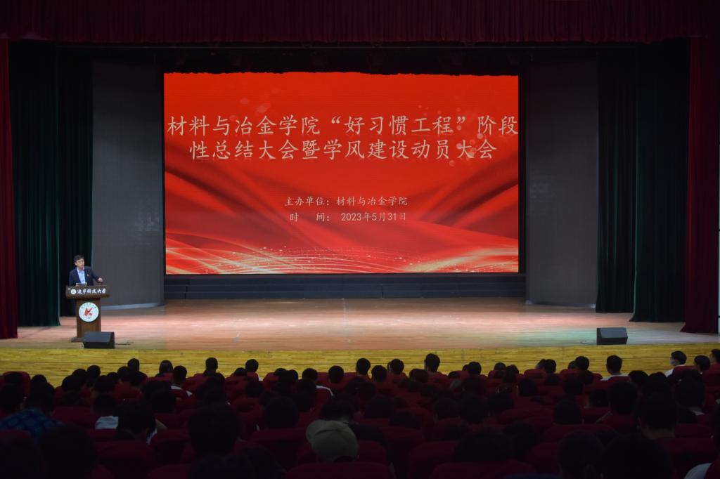 5月31日下午,材冶学院组织召开“好习惯工程”阶段性总结大会暨学风建设动员大会。学院党委副书记兼副院长艾英华、学办主任贾学龙、团委副书记高守祺、全体辅导员、团委学生会主要学生干部、各班级班长和团支部书记、2022级全体学生参加会议。