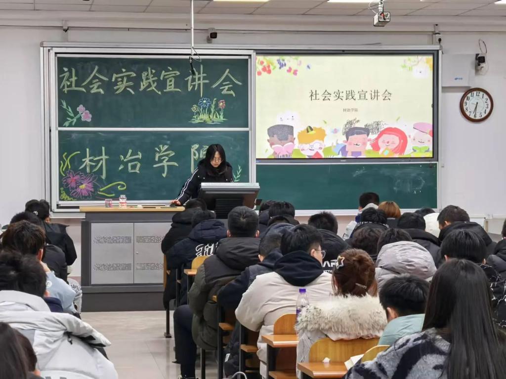12月30日,材冶学院在博学楼A105召开2025年“返家乡”寒假社会实践活动培训动员会,100多名学生参加,会议由学院团委实践部负责人主持。