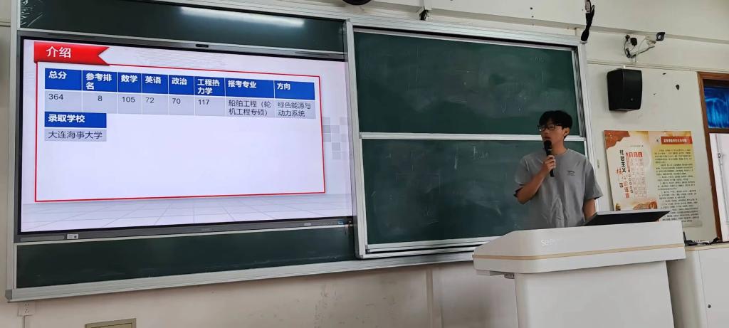 分享会上,学生代表能源2021-2班高阔阔(考取大连海事大学)、能源2021-4班刘卓(考取中国矿业大学)、能源2021-3班刘承康(考取东北大学)、能源2021-2王沂(考取昆明理工大学),材料2021-2班武梓颖(考取西北工业大学)、材料2021-2班张晨(考取北京科技大学)、材料2021-4班王利强(考取武汉理工大学)、材料2021-1班芦家慧(考取沈阳工业大学)从不同角度分享经验,他们分别围绕院校专业选择、复习计划制定、公共课与专业课备考技巧、心态调整、院校调剂技巧等方面展开分享,结合自身经历,毫无保留地传授避坑指南与高效学习方法。