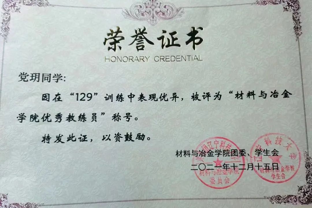 2021学年:第五十届运动会400米第一名、200米第四名、 10*400第二名、4*100第四名、沈阳地区高校大学生田径运动会400米第四名、200米第六名 、4*100米第一名、4*400米第二名、129环校园接力赛第二名