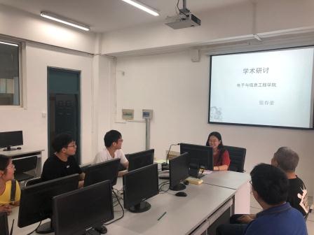2019年6月19日,在电信学院在计算机网络实验室举办“创新中国·引领未来”庆祝建国70周年电信学院研究生学术报告系列活动,学术报告由高闯老师主持,学院科研团队老师及研究生参加。