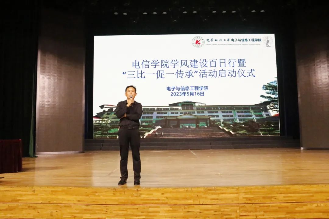 为深入学习贯彻习近平新时代中国特色社会主义思想,落实《8xbet手机客户端进一步加强内涵建设 服务辽宁全面振兴新突破三年行动方案》要求,加强学风建设和文化建设,营造良好的育人环境,5月16日,电信学院于校礼堂举行学风建设百日行暨“三比一促一传承”活动启动仪式,此次活动由电信学院党委书记王会立主持,电信学院21、22级全体学生参加。