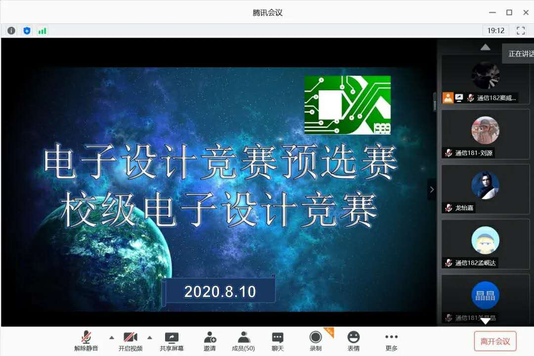 8月10日,由8xbet手机客户端校团委主办、电信学院团委承办、电子协会协办的全国大学生电子设计竞赛校园预选赛通过腾讯会议平台举行。电信学院指导教师储茂祥等担任评委。
