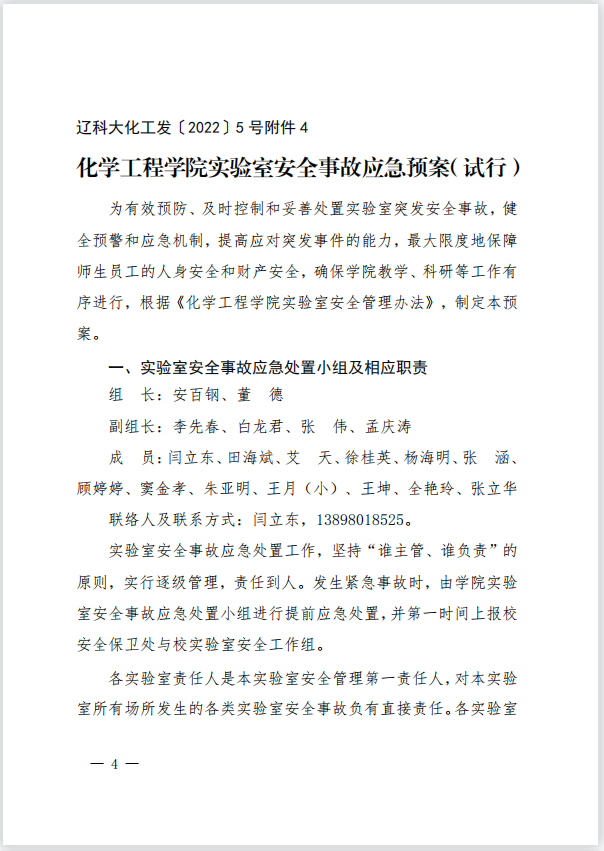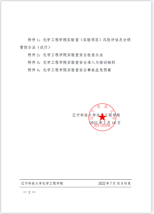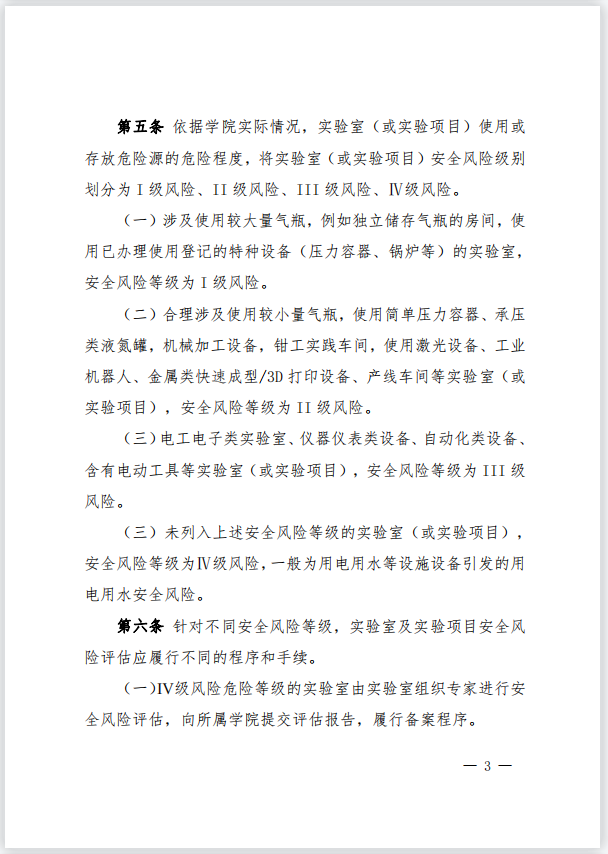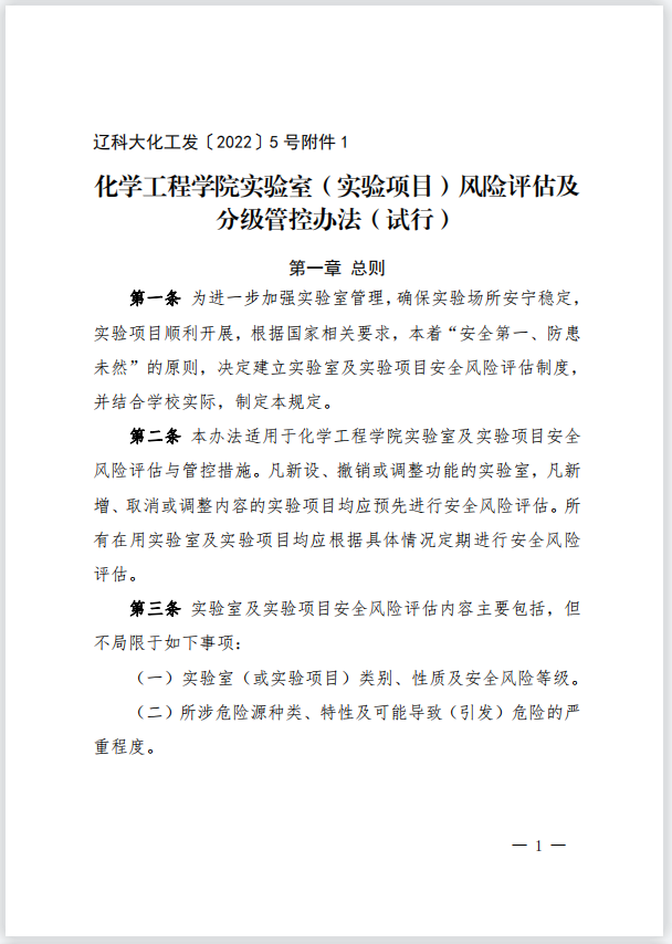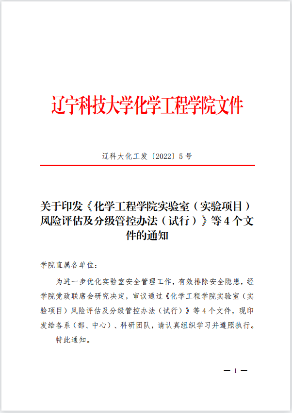 关于印发《化学工程学院实验室(实验项目)风险评估及分级管控办法(试行)》等4个文件的通知