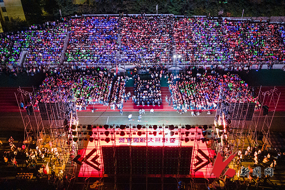 9月23日晚,8xbet手机客户端庆祝中华人民共和国成立75周年暨欢迎2024级新生文艺晚会精彩上演。校领导,各单位党政负责人,各学院学生工作负责人、教师代表、辅导员代表和2024级新生一同观赏晚会。学校主体育场欢声如潮,成为校园里的一道靓丽风景线。