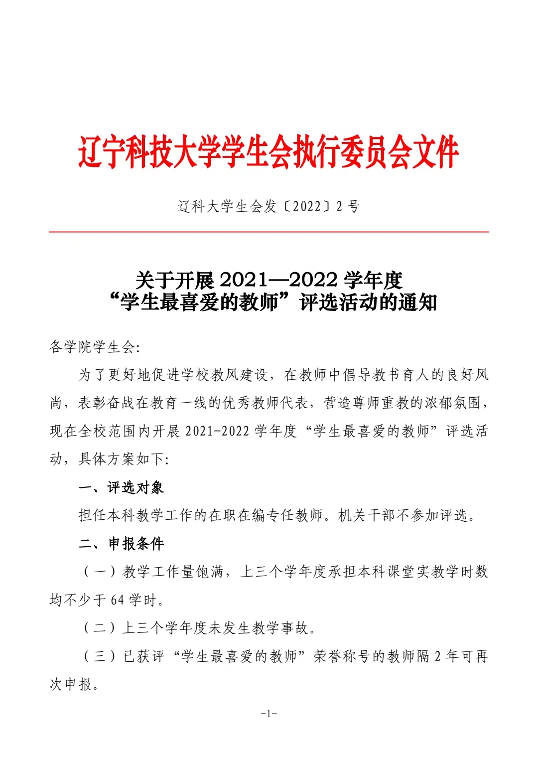 关于开展2021-2022学年度“学生最喜爱的教师”评选活动的通知