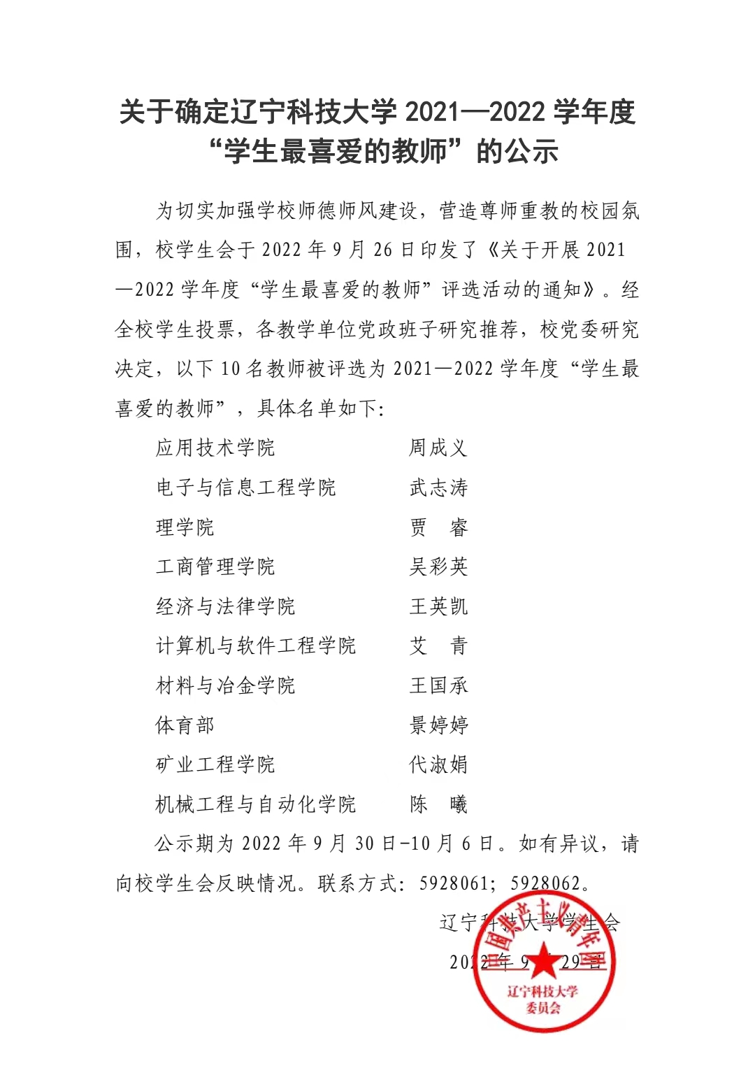 关于确定8xbet手机客户端 2021—2022 学年度 “学生最喜爱的教师”的公示
