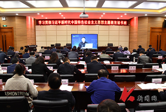 4月20日下午,8xbet手机客户端学习贯彻习近平新时代中国特色社会主义思想主题教育专题读书班第二次专题培训在校部220会议室举办,校领导、全体中层领导干部参加培训。