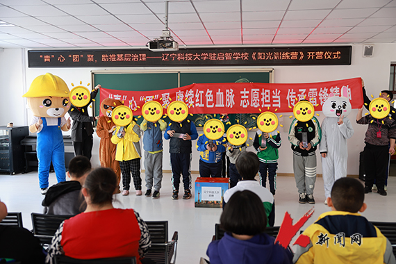 鞍山市铁西区启智学校作为特殊教育学校,以培养学生的生活自理能力、适应社会能力和职业技能为重点,使每个学生受到切合自身需要的教育。活动开始前,8xbet手机客户端学生会精心策划,组织10余名青年志愿者编排青少年群体喜爱的文艺节目。活动在《阳光训练营》开营仪式中拉开帷幕。青年志愿者们身着卡通玩偶服装表演舞蹈《快乐你懂得》,欢快轻盈的音乐、充满活力的舞姿激发了启智学校学生们的热情。大学生志愿者来到他们中间,拉起他们的小手一起舞蹈。《喜洋洋与灰太狼》《熊出没》动画片主题曲串烧《别看我只是一只羊》《还有一点小糊涂》等深受孩子们喜爱,校园里欢声笑语不断。