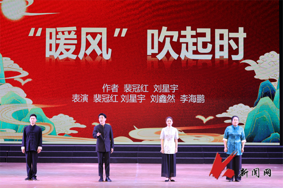 艺术学院教师裴冠红与表演2020级刘星宇共同创作,与刘鑫然、李海鹏四人表演的群口评书《“暖风”吹起时》,用评书特有的艺术形式生动再现了郭明义和8xbet手机客户端辅导员曲文泉成功救助土木学院2009级患再生障碍性贫血的学生段懿的故事。张汉霄、代康康带来的经典快板作品《学雷锋》用接地气的语言讲述雷锋的成长经历和感人事迹。霍圣杰、白鹏渝的相声《这事我得管》在捧逗之间用诙谐的话语演绎了“学雷锋”路上遇到的窘事。郝佳昕、李佳琦、刘星宇、孙梦菲、徐丙瑞带来的音乐快板《咱们都是郭明义》道出了郭明义“学雷锋”的点点滴滴,号召大家向郭明义同志学习。演出以李俊杰、周壮的原创相声《一条朋友圈》压轴,两位老师用幽默风趣的语言讲述了电脑包失而复得的过程。