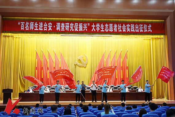 2023.07.11 8xbet手机客户端举行“百名师生进台安·调查研究促振兴”暑期专项社会实践出征仪式