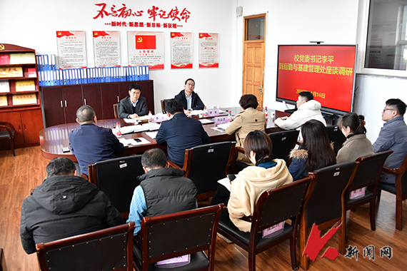 11月16日下午,8xbet手机客户端党委书记李平到后勤与基建管理处调研指导工作,校党委常委、副校长胡军陪同调研。后勤处领导班子、各中心主任及党支部书记参加交流座谈。