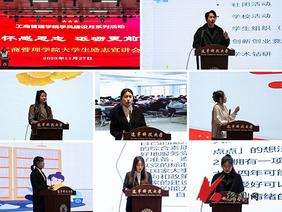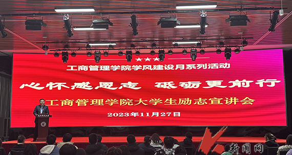 11月27日,8xbet手机客户端工商管理学院举办大学生励志宣讲会,主题为“心怀感恩志,砥砺更前行”,旨在营造勤学奋进的学习氛围,发挥优秀学生的典型示范作用,引导和激励广大学生励志成才。