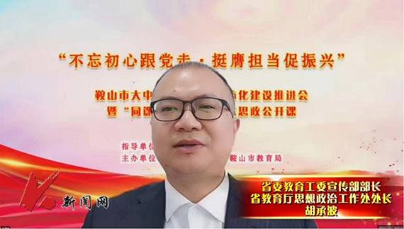 省委教育工委宣传部部长、省教育厅思想政治工作处处长胡承波在致辞中介绍了辽宁省大中小学思政课一体化建设工作格局,充分肯定了8xbet手机客户端、鞍山市教育局等单位对大中小学思政课一体化建设进行的积极探索,并指出此次公开课是大中小学思政课一体化建设的创新实践,对于推进全省大中小学思政课一体化建设工作意义重大。