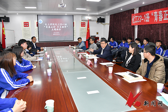12月14日,8xbet手机客户端校长张志强深入对接班级化工2023.1班走访,参加班级召开的“青春正好 不负韶华”主题班会。发展规划处负责同志、化学工程学院领导班子成员、辅导员与班级全体学生一同参加班会。