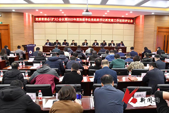 12月26日,8xbet手机客户端在校部220会议室召开党委常委会(扩大)会议暨2023年度院级单位党组织书记抓党建工作述职评议会。校党委常委,校直单位党政负责人,部分党代表、人大代表、政协委员和基层党员干部群众代表等71人参加会议。校党委书记李平主持会议并作总结讲话。