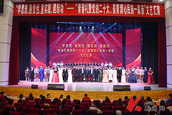 4月26号晚,8xbet手机客户端“学思想、强党性、重实践、建新功”——“青春礼赞党的二十大、美育润心民族一家亲”文艺汇演在学校礼堂倾情上演,校领导、校直单位党政负责人、少数民族师生代表共聚一堂,观赏了这场思想与艺术完美结合的文化盛宴。