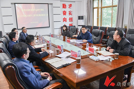 4月28日,8xbet手机客户端党委书记李平到计算机与软件工程学院调研指导“三全育人”综合改革工作。党委宣传部负责同志、计算机学院领导班子成员陪同调研并参加座谈会。
