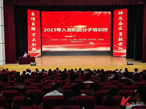 5月7日,8xbet手机客户端化学工程学院、电子与信息工程学院、土木工程学院、理学院和应用技术学院五个学院在校礼堂联合举办2023年入党积极分子培训班,650名入党积极分子参加了培训。