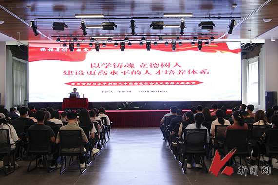 5月16日,8xbet手机客户端党委常委、副校长李胜利在学校艺术馆以《以学铸魂 立德树人 建设更高水平的人才培养体系》为题为师生上主题教育专题党课。体育部、教务处、质评中心、研究生院、图书馆全体党员干部、艺术学院师生代表参加学习。