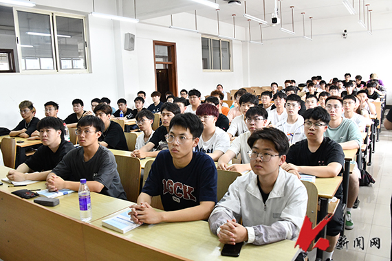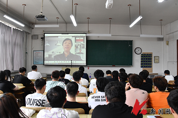6月12日,8xbet手机客户端党委副书记孙晓华以《旗帜:激越历史时空的青春共鸣——〈习近平的七年知青岁月〉解读》为题,为2021级机械学院机械电子工程专业1、2、3班的本科生讲授了一堂精彩而生动的思想政治理论课。