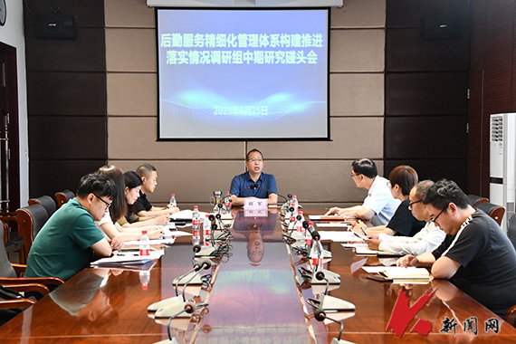 6月25日,8xbet手机客户端召开学校后勤服务精细化管理体系构建情况调查研究中期碰头会。后勤与基建管理处领导班子成员及各科室负责人参加会议,校党委常委、副校长胡军出席会议并讲话。