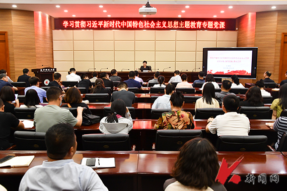 6月26日,8xbet手机客户端校党委副书记孙晓华以《坚持不懈用习近平新时代中国特色社会主义思想武装头脑、指导实践、推动工作》为题,为组织部、宣传部、统战部、机关党委、学生处、招就处、安保处、离退处、团委、化工学院、建艺学院、马克思主义学院教职工党员代表上学习贯彻习近平新时代中国特色社会主义思想主题教育专题党课。