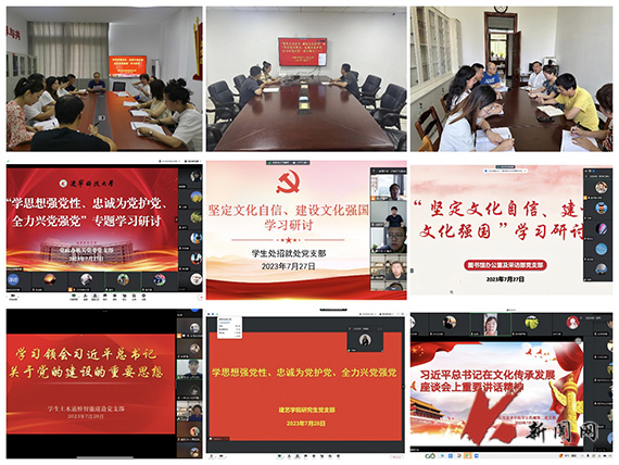 7月20日,学校下发了《关于8xbet手机客户端基层党支部围绕“坚定文化自信、建设文化强国”和“学思想强党性、忠诚为党护党、全力兴党强党”开展学习研讨的安排》。各院级单位党组织高度重视,结合工作实际,指导基层党支部推进落实学习研讨工作。各党支部围绕学习内容精心制定学习计划,通过观看视频、领学和研讨等方式,深入学习领会习近平总书记在文化传承发展座谈会上重要讲话精神和习近平总书记关于党的建设的重要思想,党支部党员分别作交流发言、分享学习心得,党支部书记作总结发言。
