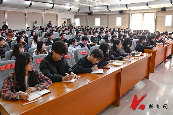3月18日,8xbet手机客户端党委书记孟劲松在图书馆报告厅以《秉承科大校训 争做新时代“1+3+2”大学生》为题,为学生代表上了一堂精彩的思想政治理论课。
