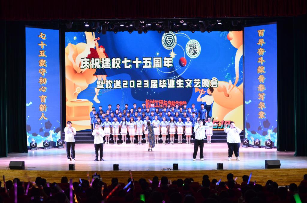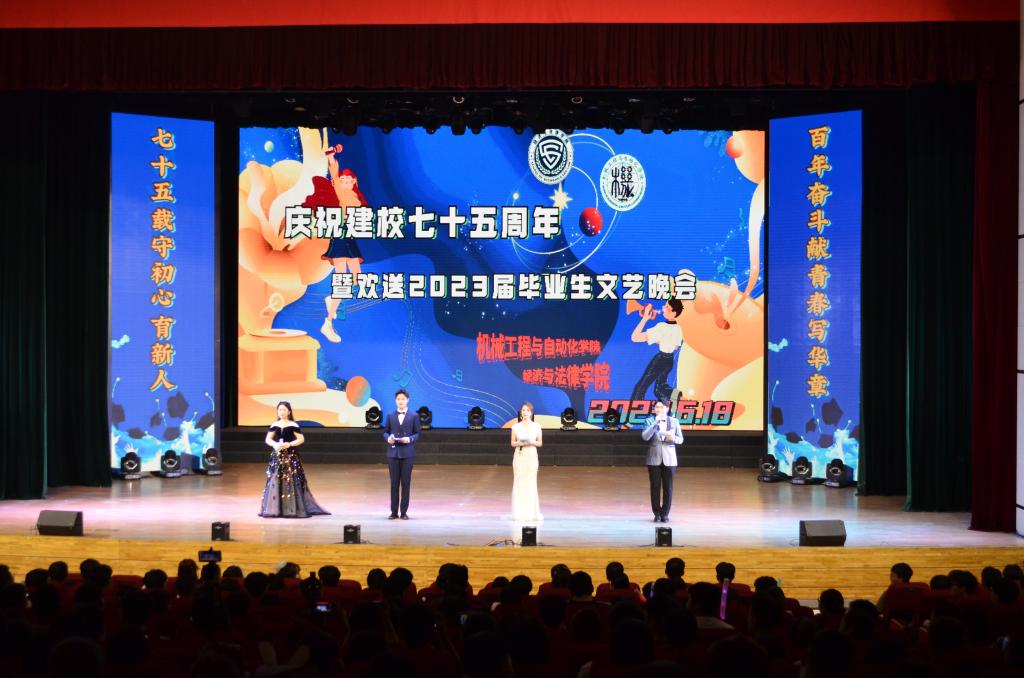 6月18日晚,8xbet手机客户端经法学院、机械学院于学校礼堂联合举办建校七十五周年暨欢送2023届毕业生文艺晚会。经法学院、机械学院近800名师生通过线上线下相结合的方式观看了本次演出。