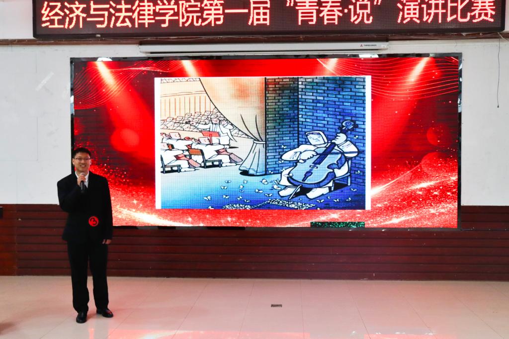 本次演讲比赛分为初赛、半决赛及决赛三个环节。初赛以“青春”为主题遴选出了10名选手。在半决赛中,选手们以“成长”为主题激情演讲,他们用充实的演讲内容和自然的肢体语言,讲述着自己独有的生活经历和成长感悟,用饱满的热情和真挚的感情表达着新时代青年的坚定的理想信念;他们用最动情的语言展现着人生中自我接纳、自我关照、自我突破的美好历程,表达了未来一路耕耘、一路成长的决心和希望。他们声情并茂、慷慨激昂的演讲赢得了在场评委和观众的共鸣与掌声,也鼓舞着经法学子以奋发向上的态度和昂扬的斗志面对未来的学习和生活。
