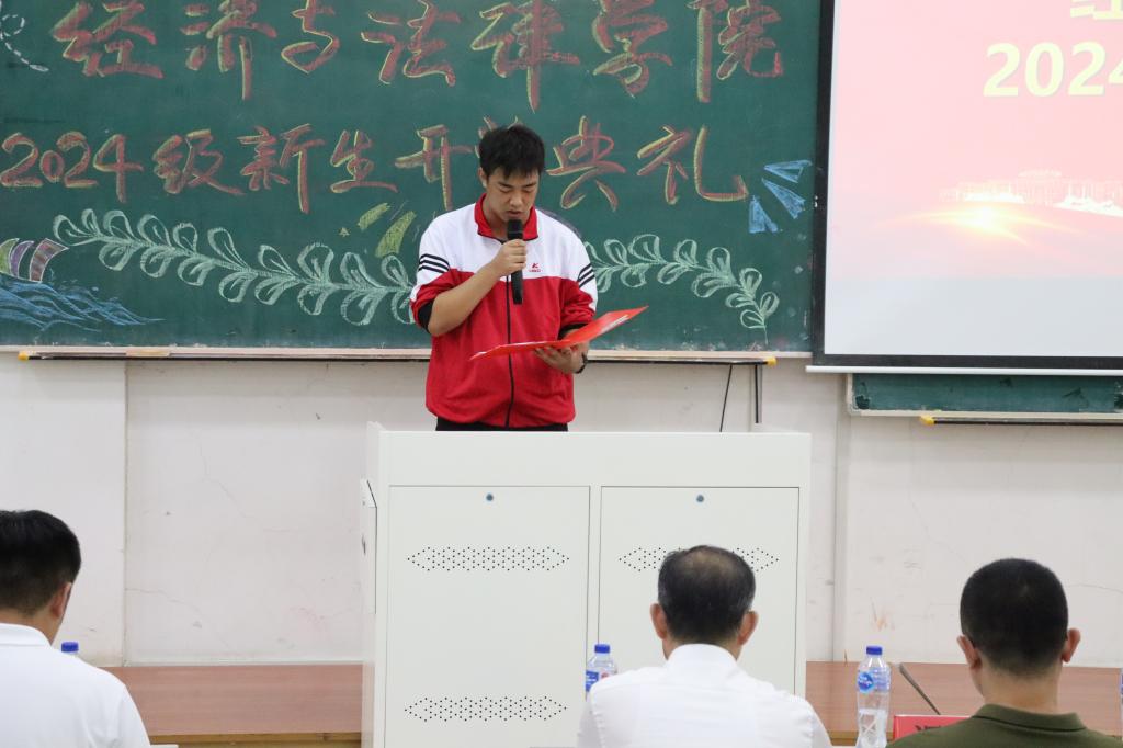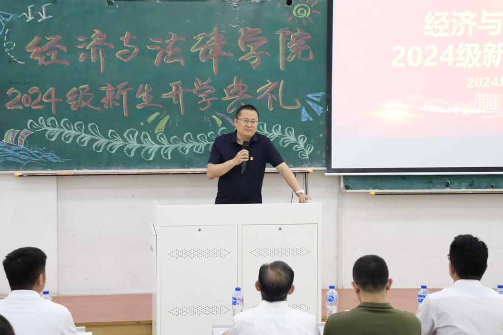 9月4日,经法学院于博学楼C302举办2024级本科新生开学典礼。典礼由学院党委副书记张国华主持,学院领导班子全体成员、辅导员、教师代表、家长代表及2024级261名本科生参加了本次典礼。