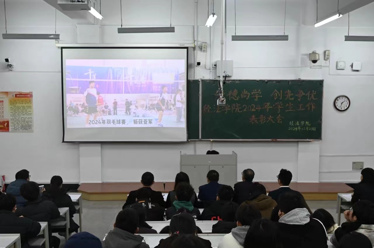 12月23日,经法学院于博学楼A101召开“崇德尚学 创先争优”2024年学生工作表彰大会。会议由学院党委书记赵智博主持,学院领导、各系主任、班主任、辅导员、获奖学生代表及2024级全体学生参加。