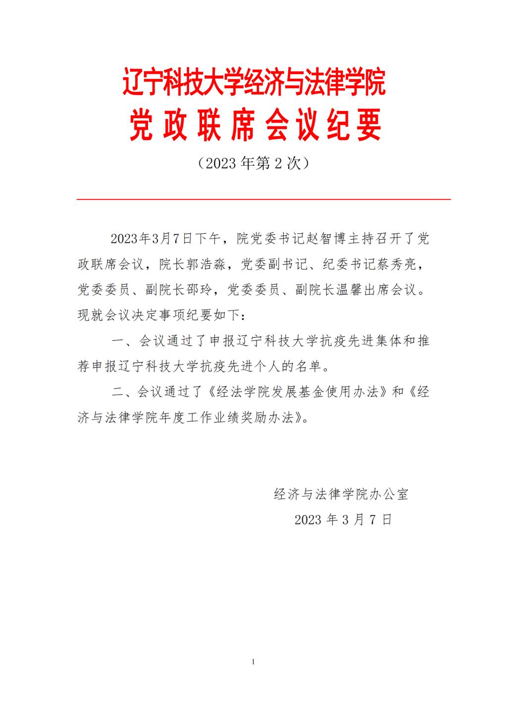8xbet手机客户端经济与法律学院党政联席会会议纪要(2023年第2次)