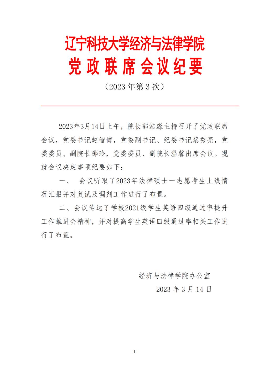 8xbet手机客户端经济与法律学院党政联席会会议纪要(2023年第3次)