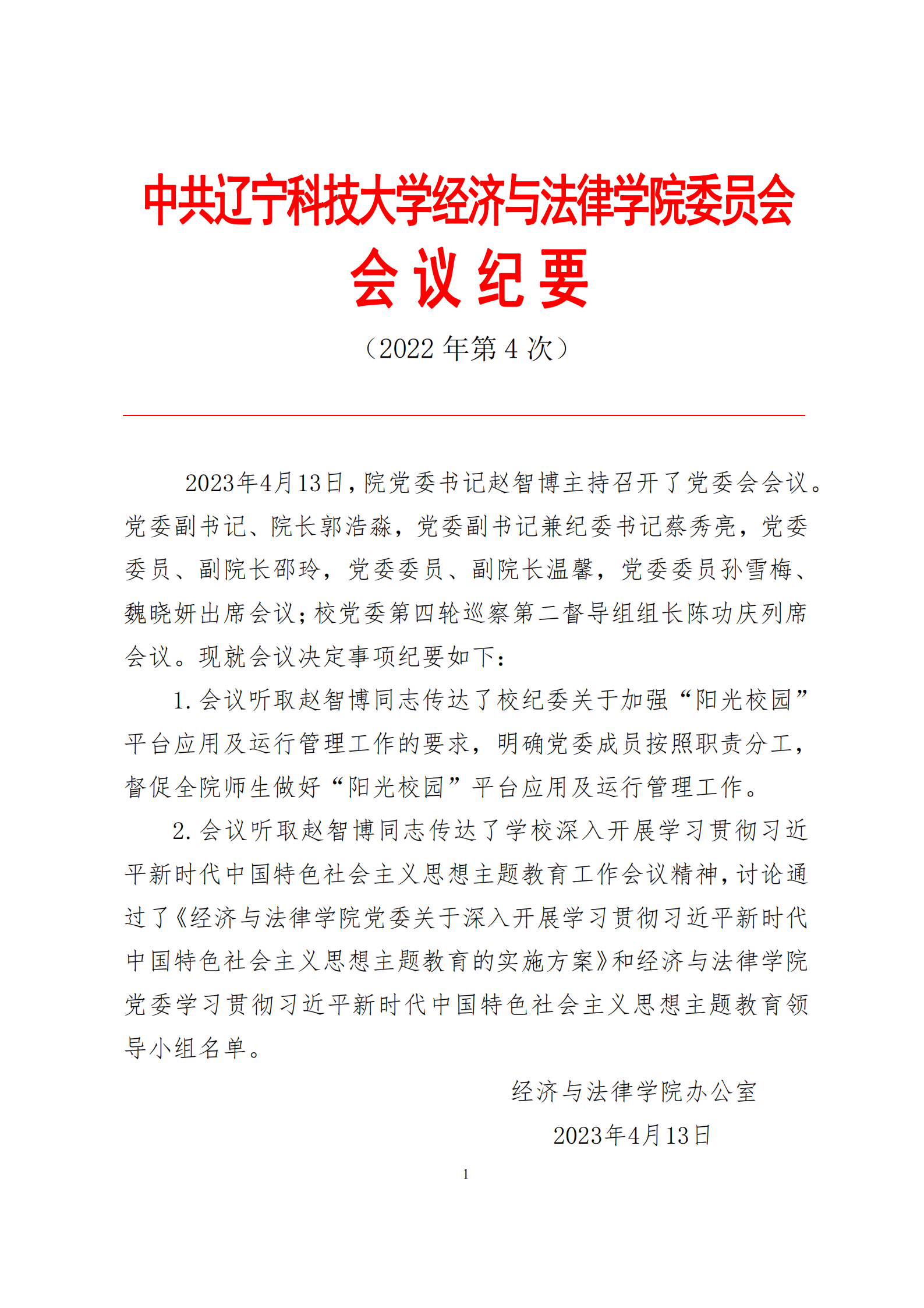 中共8xbet手机客户端经济与法律学院委员会会议纪要(2023年第4次)