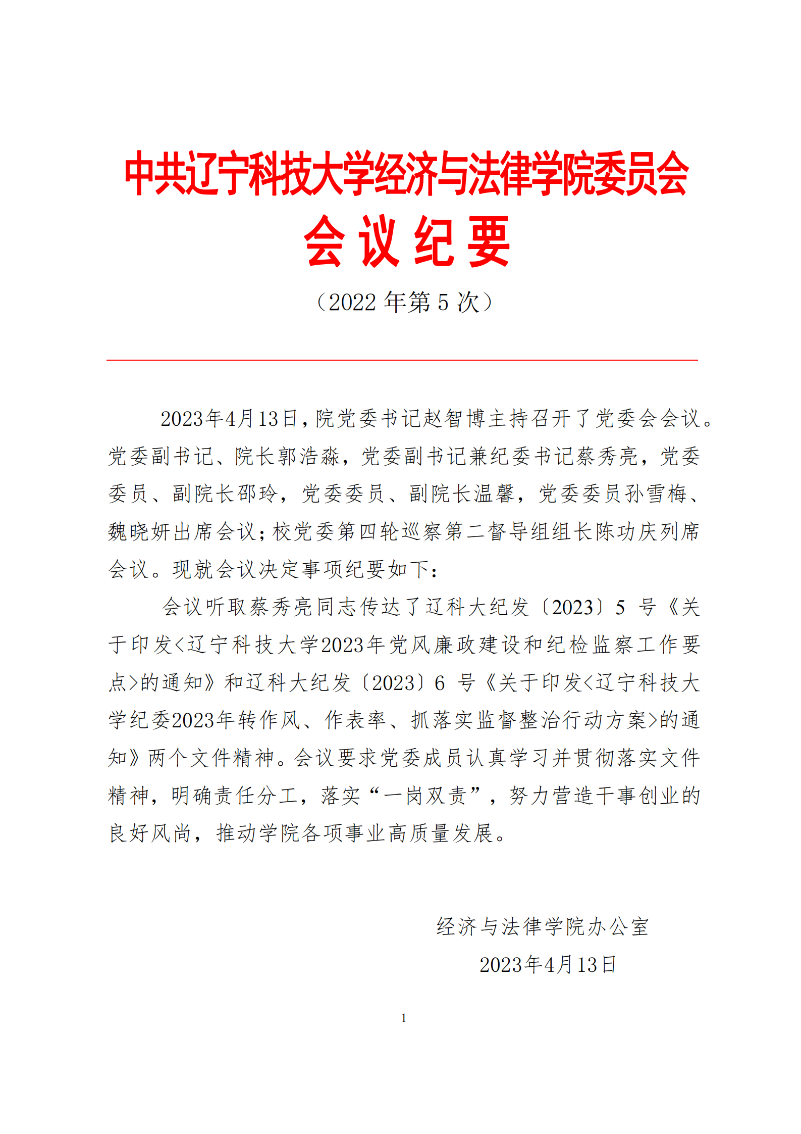 中共8xbet手机客户端经济与法律学院委员会会议纪要(2023年第5次)