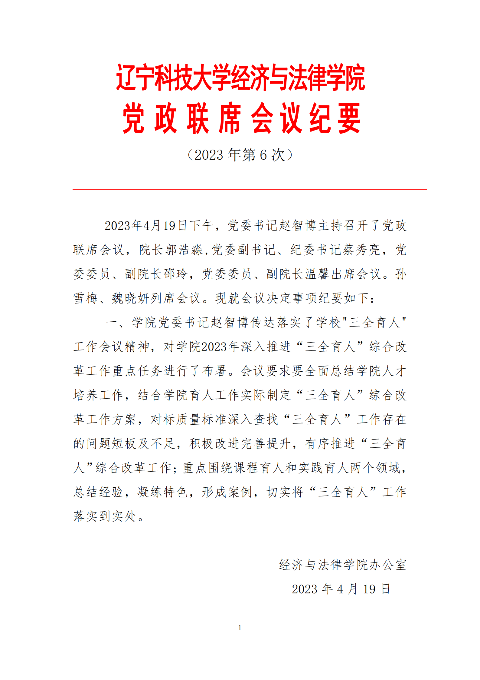 8xbet手机客户端经济与法律学院党政联席会会议纪要(2023年第6次)
