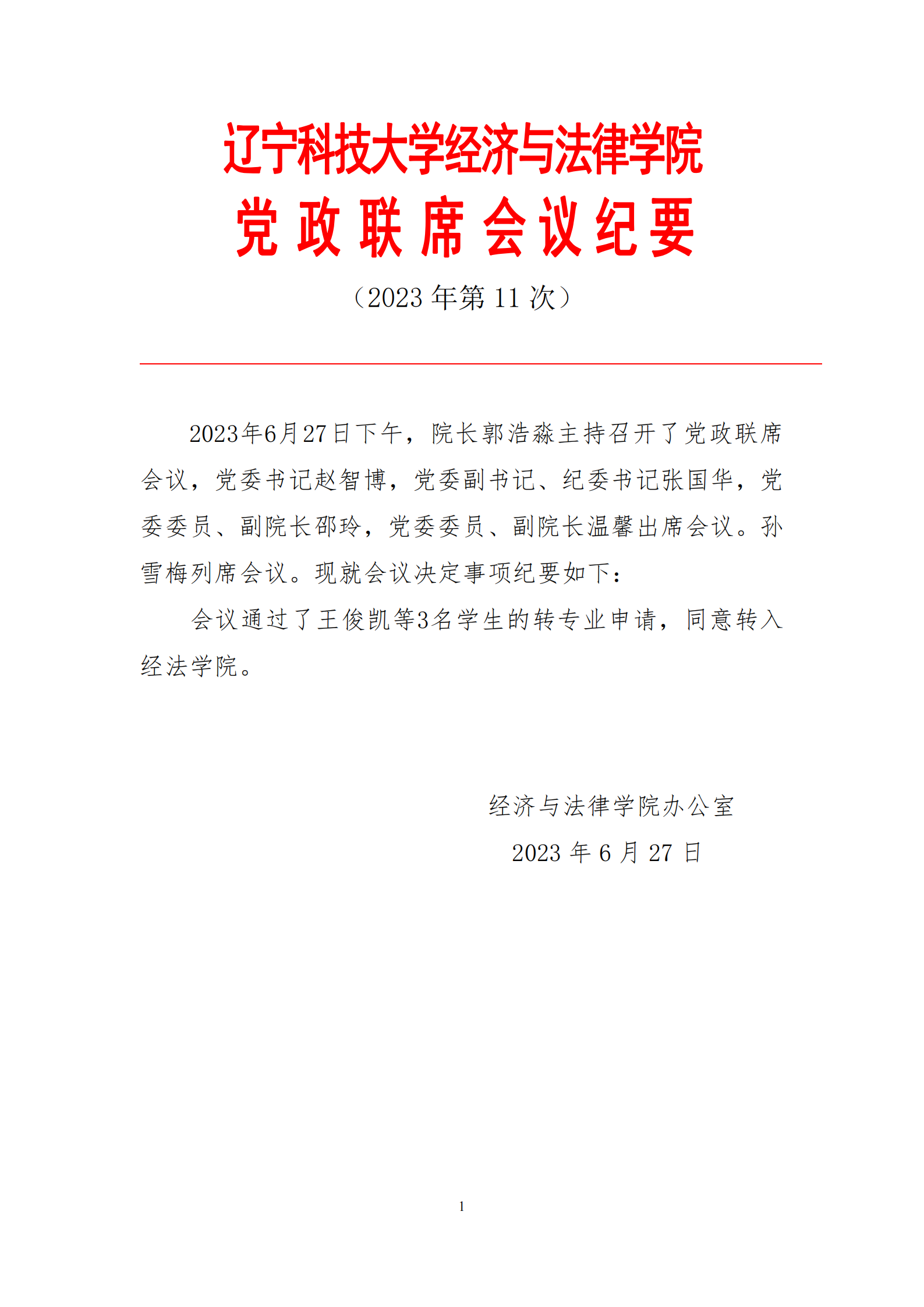8xbet手机客户端经济与法律学院党政联席会会议纪要(2023年第11次)