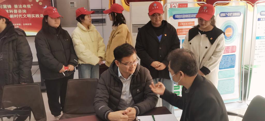 为弘扬雷锋精神,加强法治宣传教育,发挥学生在普法和推进法治建设方面的重要作用,切实提高社区居民的法治意识及依法维权能力,3月5日下午,经法学院党委书记赵智博、学办主任齐艳萍、法学专业教师及学生第一党支部全体成员来到鞍山市高新区云科社区开展法律咨询活动。云科社区近50名居民代表参加了活动。