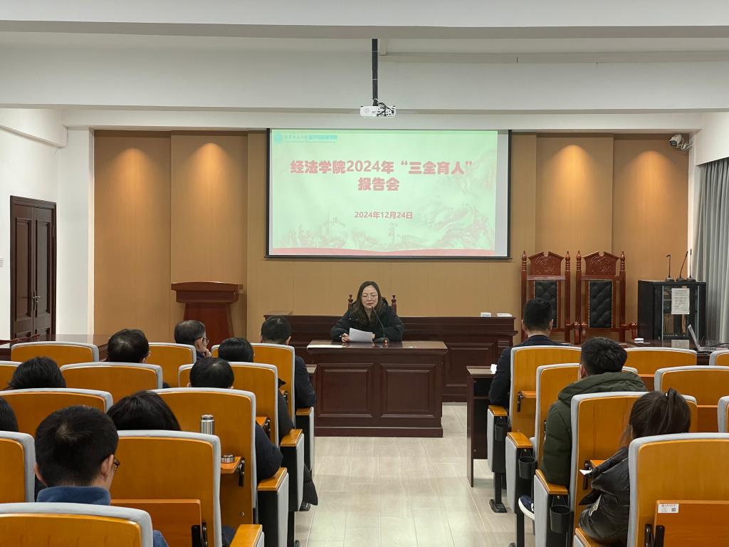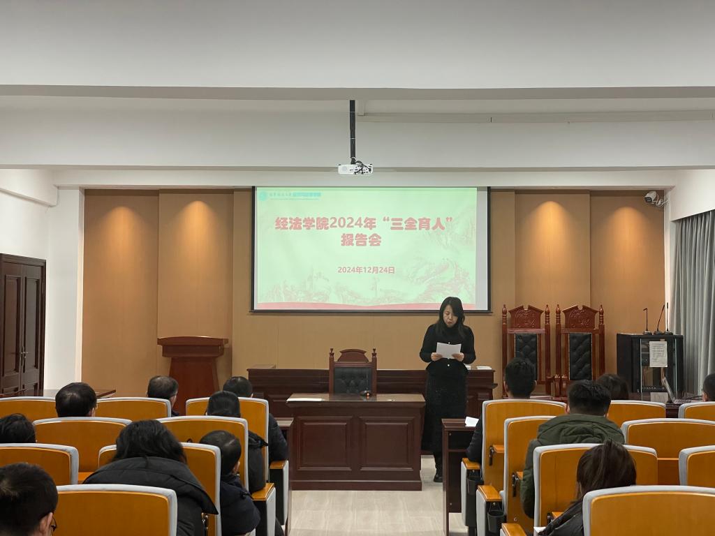 12月24日,经法学院在博识楼A402召开“三全育人”报告会。会议由学院党委书记赵智博主持,全体教工参加了会议。