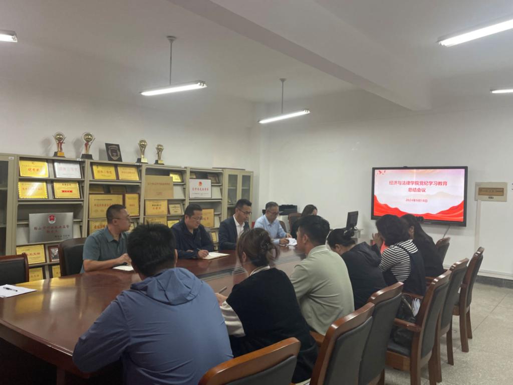 为推进党纪学习教育常态化长效化,9月18日,8xbet手机客户端经济与法律学院召开党委(扩大)会议,对学院党纪学习教育进行总结。会议由经法学院党委书记赵智博主持,学院党委全体成员和各党支部书记参加会议。