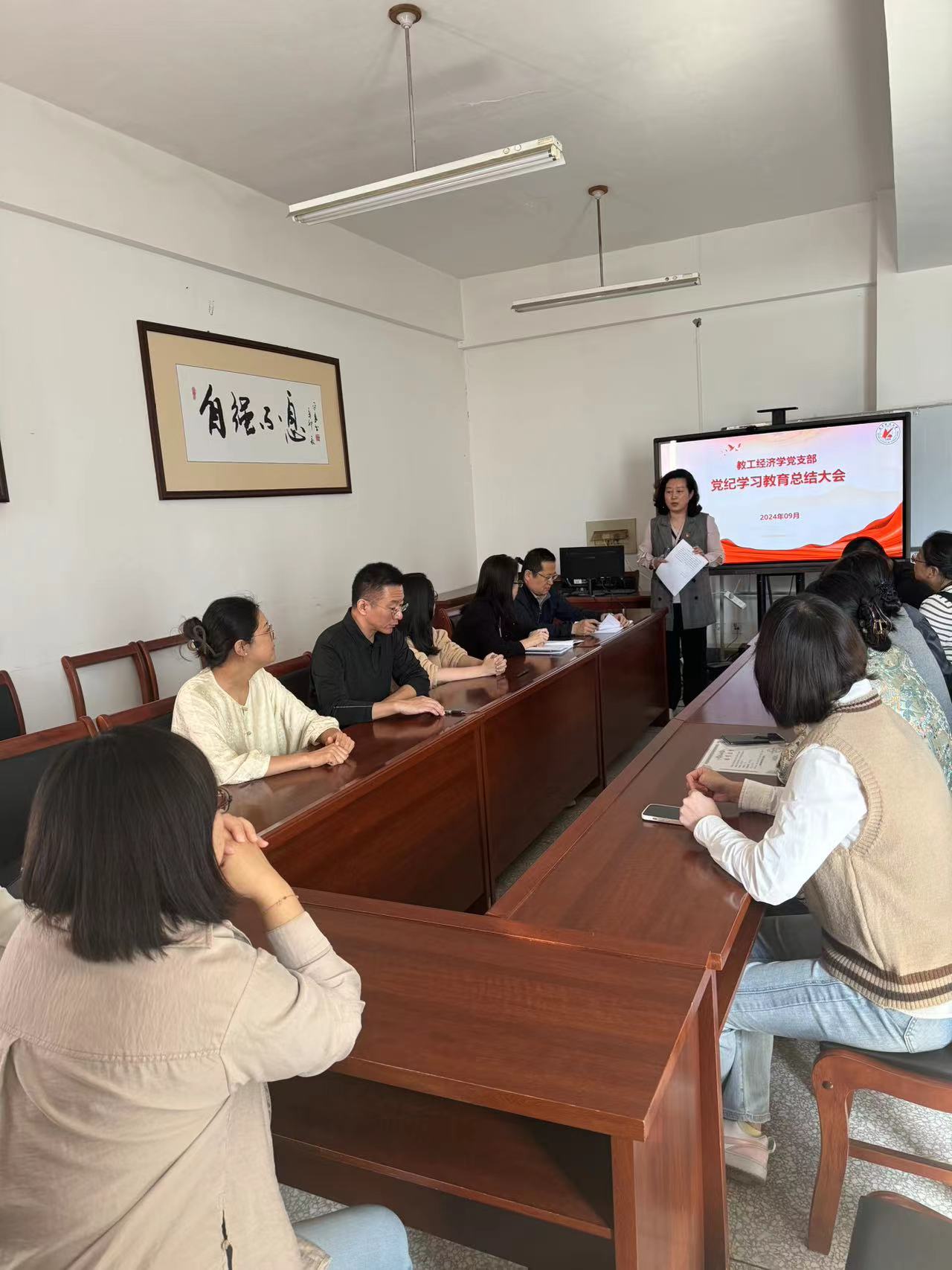 会议强调,要推进党纪学习教育常态化长效化。要进一步学习贯彻习近平总书记重要指示和学校学院关于党纪学习教育有关会议精神,切实把党纪学习教育成果持续转化为推进党的建设的强大动力。要持续深化理论武装,不断强化政治意识和政治规矩,持续加强党的纪律建设、深入推进党风廉政建设和反腐败斗争,坚持融入日常、抓在经常,激励党员干部担当作为,为学校高质量发展做出经法贡献。