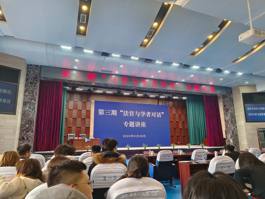2月28日上午,鞍山市中级人民法院举办的第三期“法官与学者对话”专题讲座如期开展。8xbet手机客户端经法学院副院长邵玲带领24级法硕研究生一行37人在主会场参加了本次专题讲座。